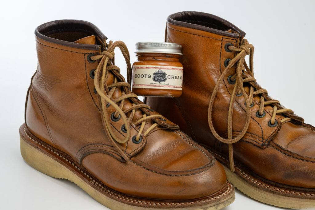 ワークブーツのメンテナンスにちょうどいい、ナチュラルなライトブラウンに仕上げました。