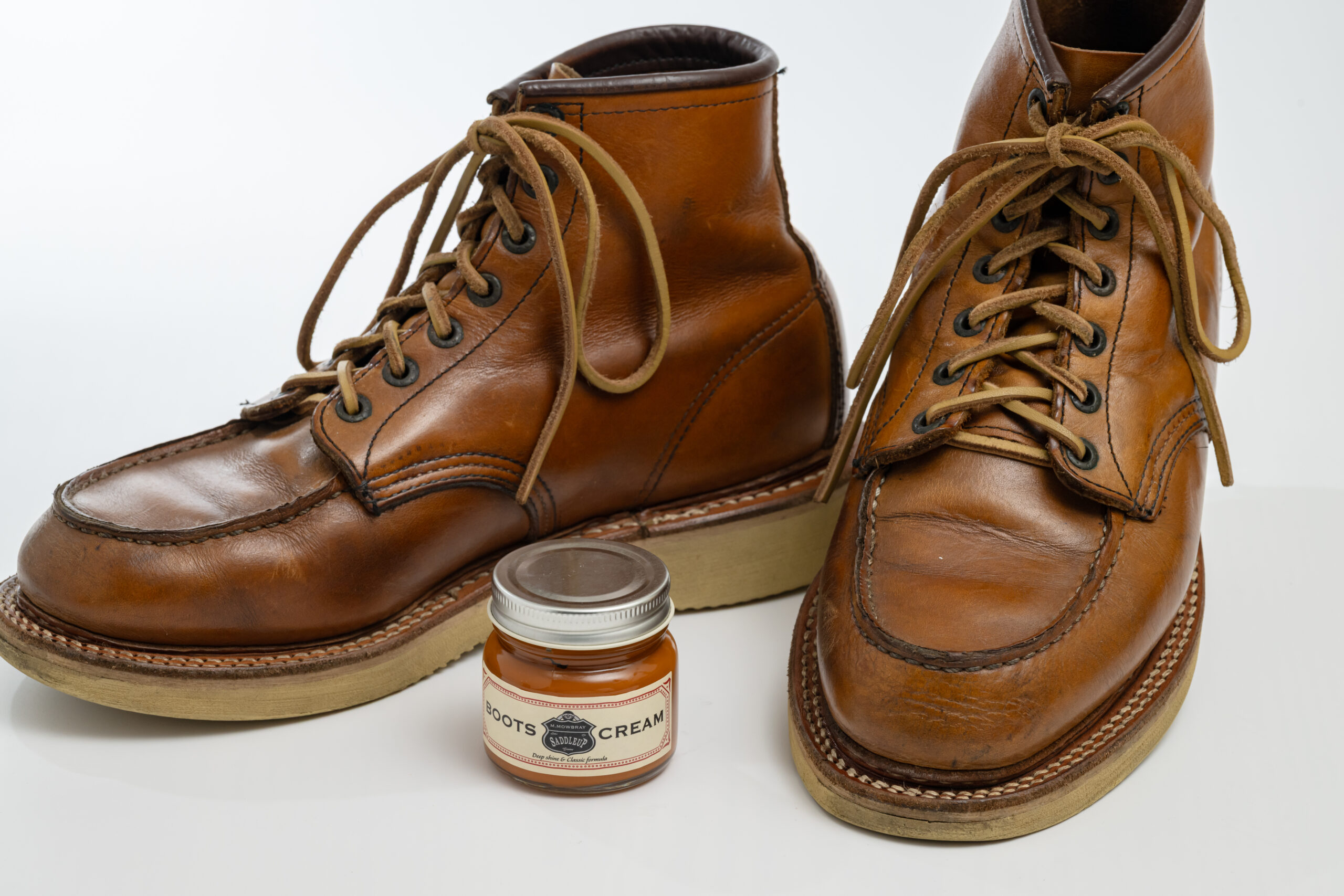 ワークブーツのメンテナンスにちょうどいい、ナチュラルなライトブラウンに仕上げました。